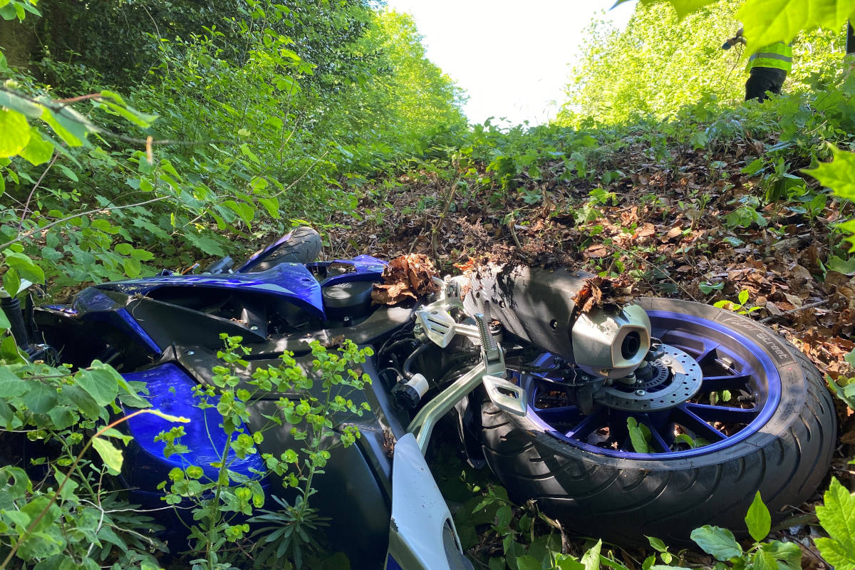 Das Motorrad der Frau schlitterte von der Strasse und landete mehrere Meter darunter im Wald. Auch die andere, zufälligerweise typengleiche Maschine wurde erheblich beschädigt. Die Kantonspolizei Aargau verzeigte den Unfallverursacher an die Staatsanwaltschaft und nahm ihm den Lernfahrausweis vorläufig ab.