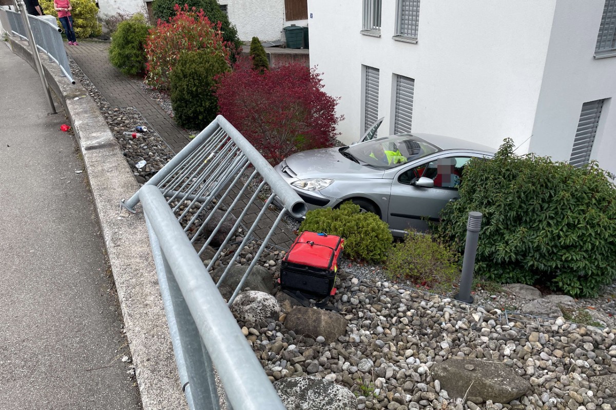 Jenseits davon durchbrach der Peugeot ein Geländer, stürzte auf den tieferliegenden Vorplatz des angrenzenden Hauses und prallte gegen dessen Mauer. Der Senior kam mit leichten Verletzungen davon. Eine Ambulanz brachte ihn ins Spital Muri. Am Auto entstand Totalschaden. Auch am Geländer sowie am Gebäude entstand beträchtlicher Schaden.