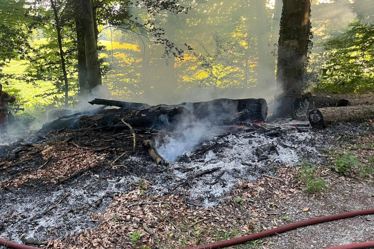 Der Brand beschädigte mehrere Bäume und den Waldboden. (Bildquelle: Feuerwehr Weinland)