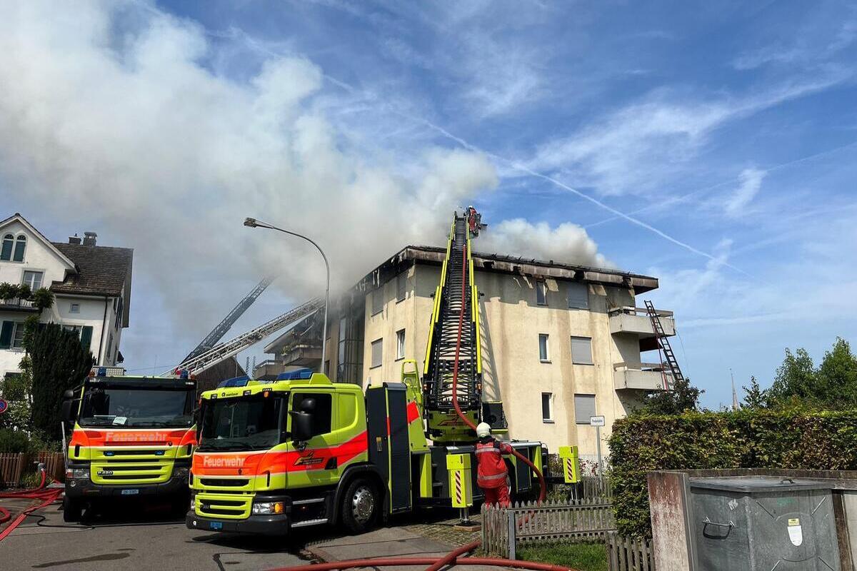 Beim Brand des Dachstockes eines Mehrfamilienhauses sowie eines Geschwindigkeitsmessgerätes vor dem Haus entstand am Samstag (31.08.2024) in Oberrieden ein Sachschaden von mehreren hunderttausend Franken. Personen wurden nicht verletzt.