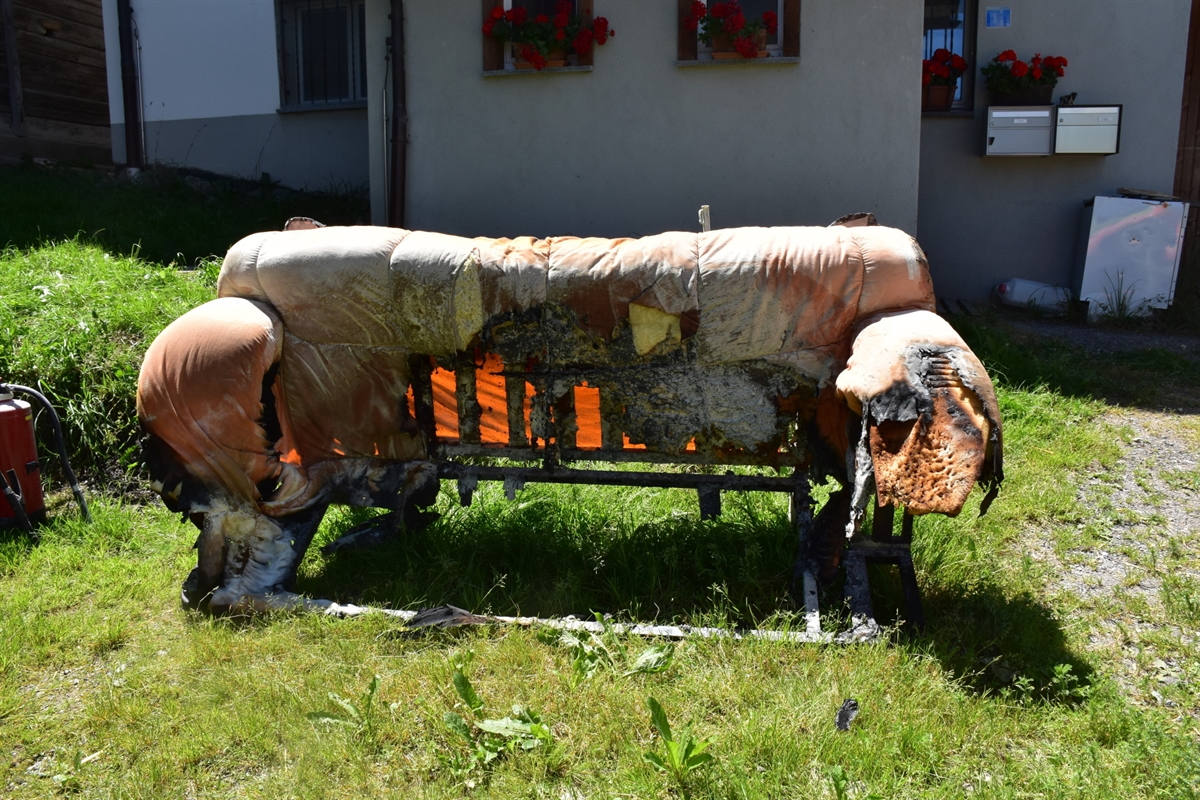 Verbranntes Sofa (durch Feuerwehr ins Freie gebracht) (Bildquelle: Kapo GR)