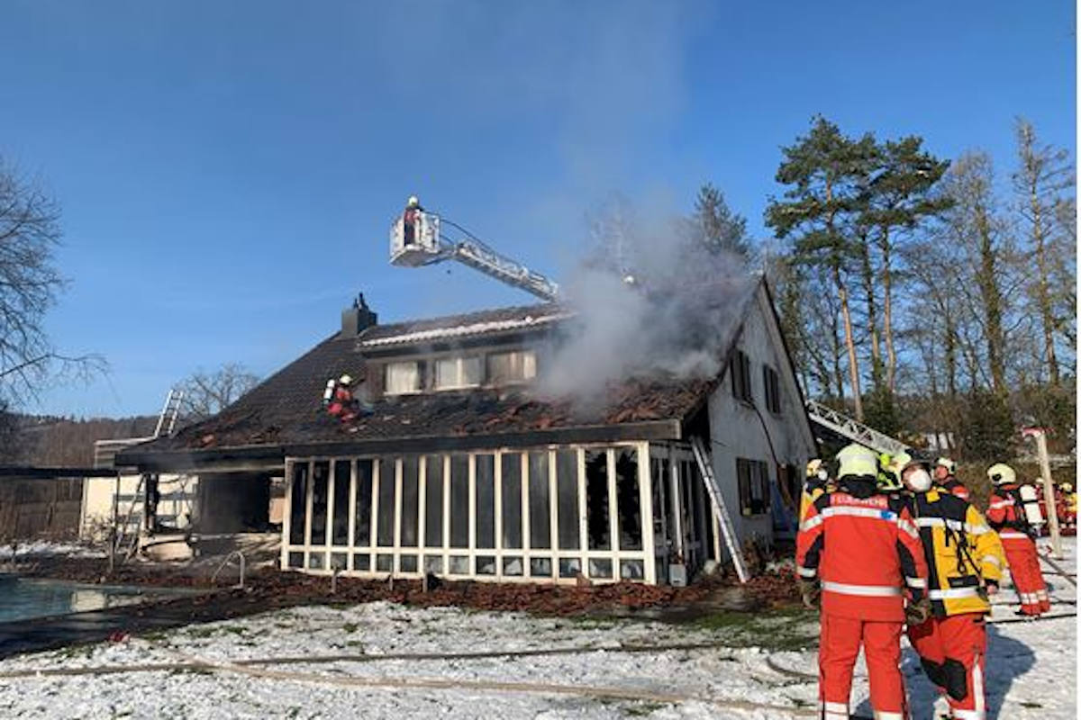 Kurz nach 13 Uhr kehrte der alleinstehende Bewohner in sein Einfamilienhaus heim. Als er das Haus betrat, drang ihm starker Rauch entgegen. Der Mann verlor die Orientierung und er konnte mittels Notruf über sein Notfallarmband Hilfe anfordern und durch Angehörige aus dem Haus gerettet werden. Während der betagte Mann mit einem Rettungsfahrzeug ins Spital gefahren wurde, dämmten die alarmierten Löschkräfte das Feuer ein. Der entstandene Sachschaden beträgt mehrere hunderttausend Franken.