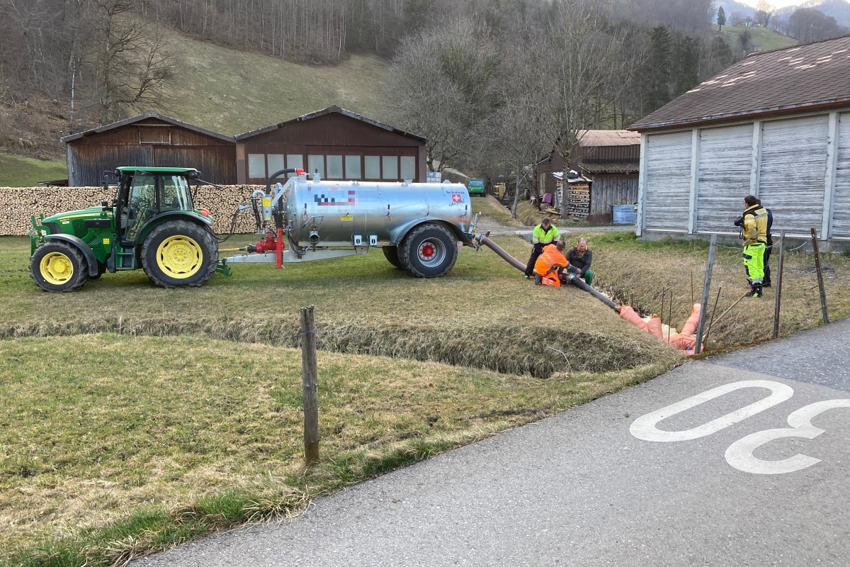 Der Bach wurde mithilfe von Landwirten aus der Umgebung mit ihren Güllenfässern ausgepumpt und das verunreinigte Wasser zur Abwasserreinigungsanlage gebracht.