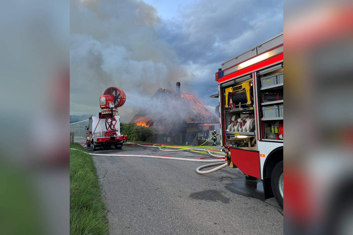 Der Kantonspolizei Bern wurde am Samstag, 17. September 2022, kurz vor 6.50 Uhr, gemeldet, dass ein Stöckli an der Liebewilstrasse in Oberwangen bei Bern (Gemeinde Köniz) brenne. Als die umgehend ausgerückten Einsatzkräfte vor Ort eintrafen, stand der Dachstock des Gebäudes bereits in Vollbrand. Die Angehörigen der Feuerwehren nahmen umgehend die Löscharbeiten auf und konnten ein Übergreifen auf ein nahegelegenes Bauernhaus verhindern. Das bewohnte Stöckli brannte jedoch komplett aus.
