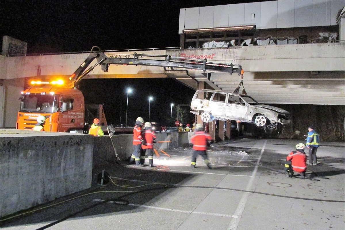 In der Nacht auf Freitag, 07.01.2022, 01.45 Uhr, brannte auf dem Parkplatz der ehemaligen Raststätte Walensee an der Autobahn A3 in Obstalden ein Personenwagen.