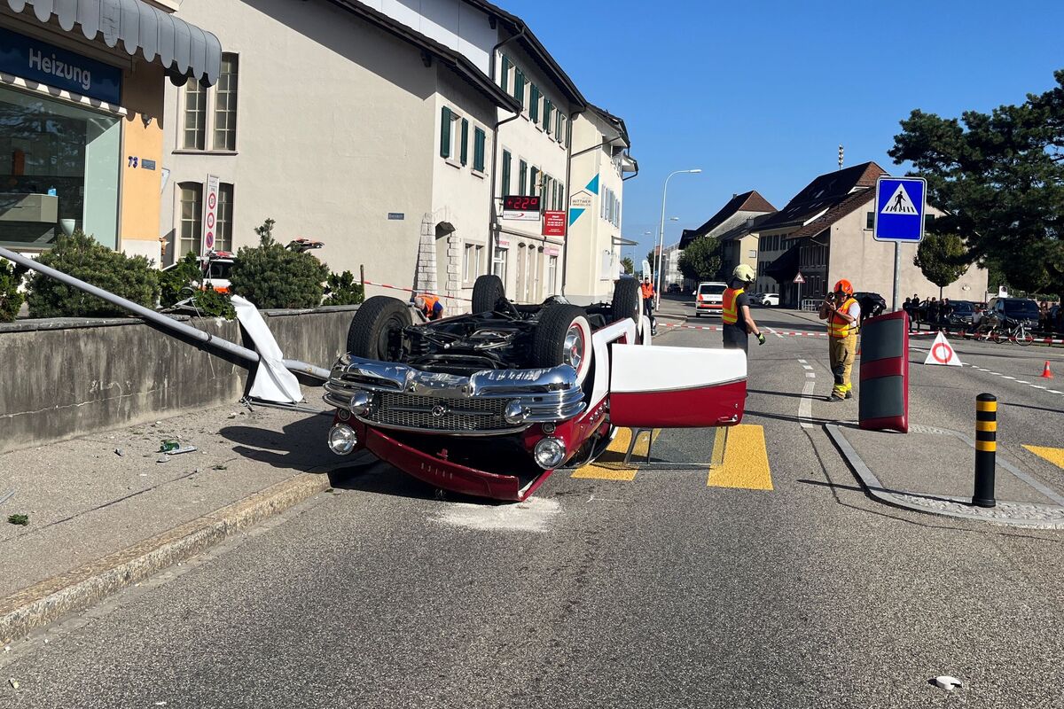 Oensingen SO - Oldtimer landet nach Unfall auf dem Dach