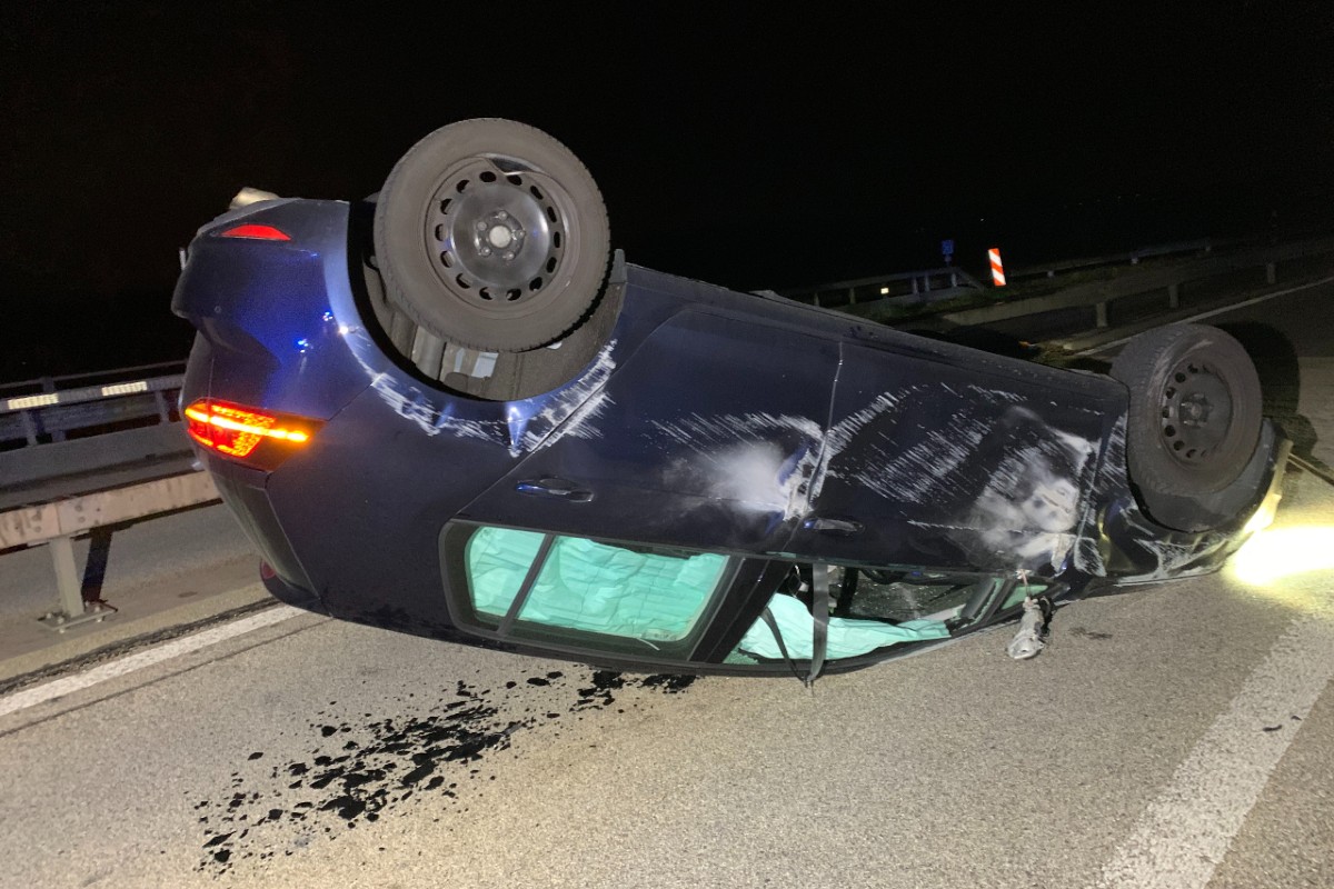 Ein alkoholisierter Autofahrer hatte in der letzten Nacht Glück im Unglück. Er hat einen Überschlag in seinem Pkw ohne Verletzungen überstanden.