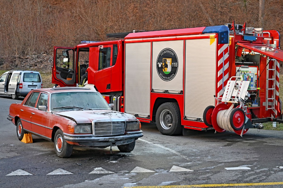 Oldtimer Mercedes in Brand geraten. (Bildquelle: Schaffhauser Polizei)