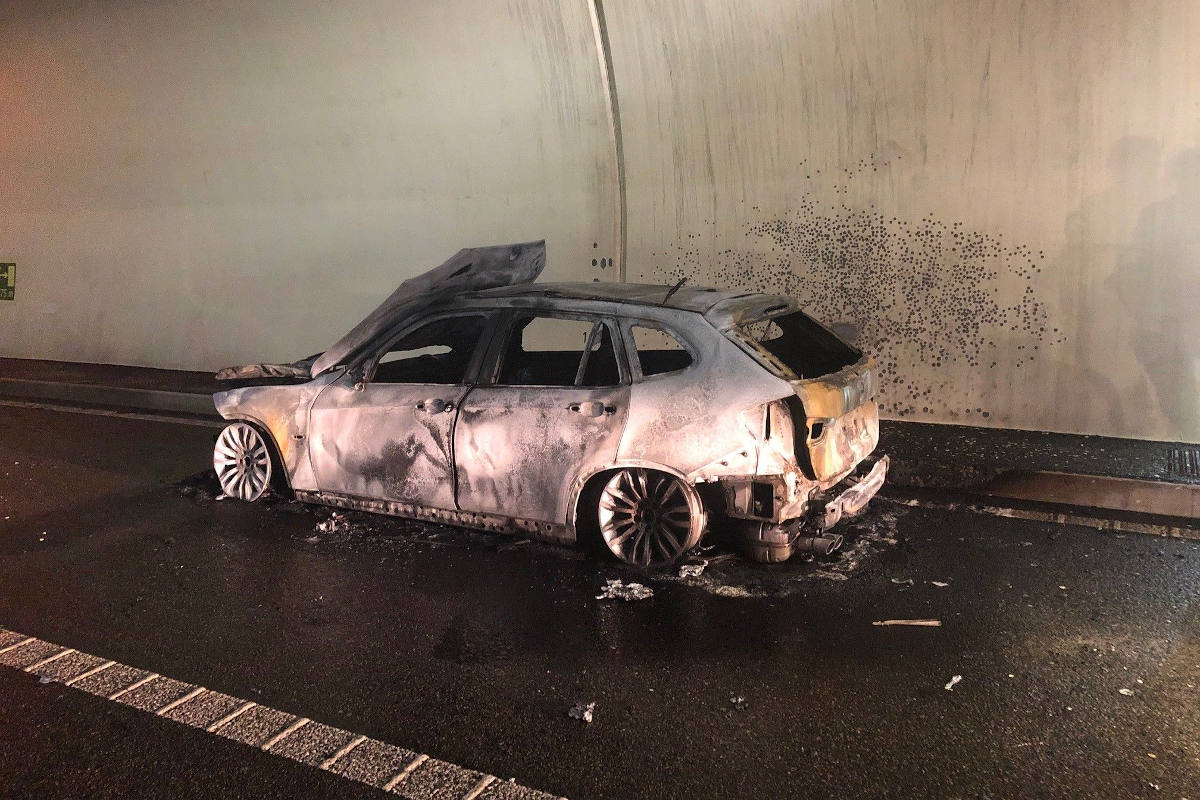 Ausgebranntes Fahrzeugwrack im Hausmatttunnel in Olten (Bildquelle: Kantonspolizei Solothurn)