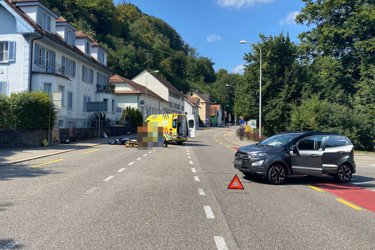 Auf der Baslerstrasse in Olten hat sich am Sonntagnachmittag, 7. August 2022, eine seitlich-frontale Kollision zwischen einem Auto und einem Motorrad ereignet. Dabei wurden der Motorradfahrer und seine Mitfahrerin schwer verletzt.
