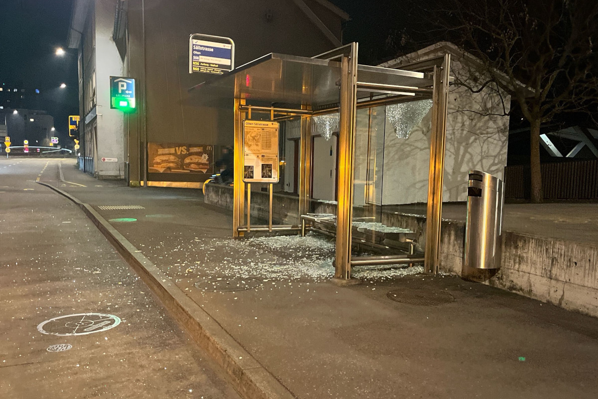 Am Dienstag, 23. Dezember 2025, kurz vor 23 Uhr, hat eine bislang unbekannte Täterschaft an der Aarburgerstrasse in Olten mehrere Glasscheiben beim Buswartehäuschen der Haltestelle «Sälistrasse» eingeschlagen und dadurch einen Schaden von mehreren tausend Franken verursacht.