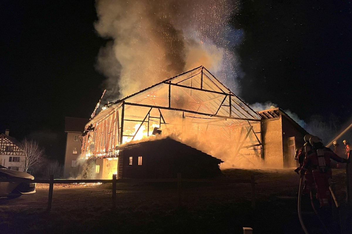 Die Scheune, in welcher sich weder Menschen noch Tiere befanden, brannte bis auf die Grundmauern nieder. Neben dem Gebäude wurden mehrere darin abgestellte Fahrzeuge sowie Gewerberäume zerstört. Der Sachschaden dürfte eine Million Franken übersteigen.
