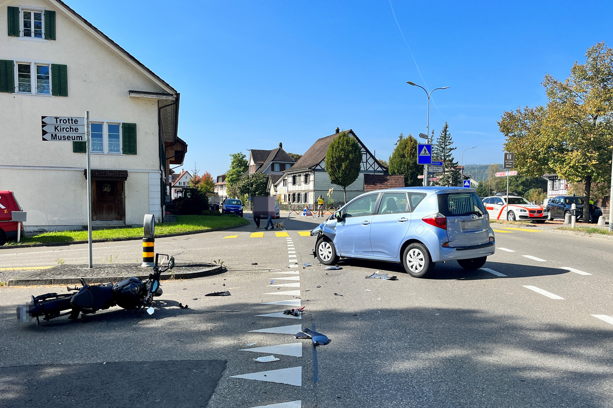 Bei der Kollision wurde der 16-jährige Motorradfahrer schwer verletzt. Nach der Erstversorgung durch den Rettungsdienst wurde er von der DRF Luftrettung ins Spital geflogen. An den Fahrzeugen entstand Sachschaden von mehreren tausend Franken.