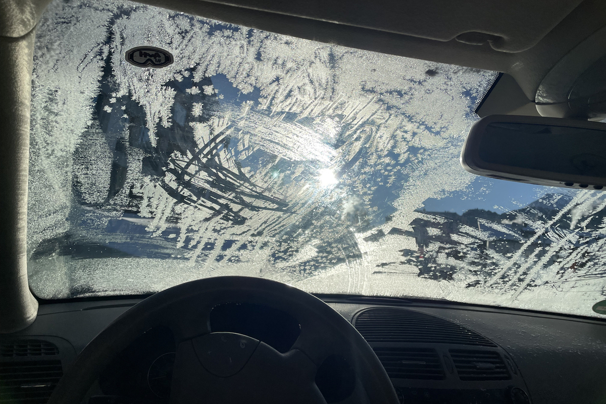Eine Automobilistin ist am Montagvormittag mit einer Zonensignalisation kollidiert. Die Frontscheibe des Autos war nicht vollständig vom Eis befreit.