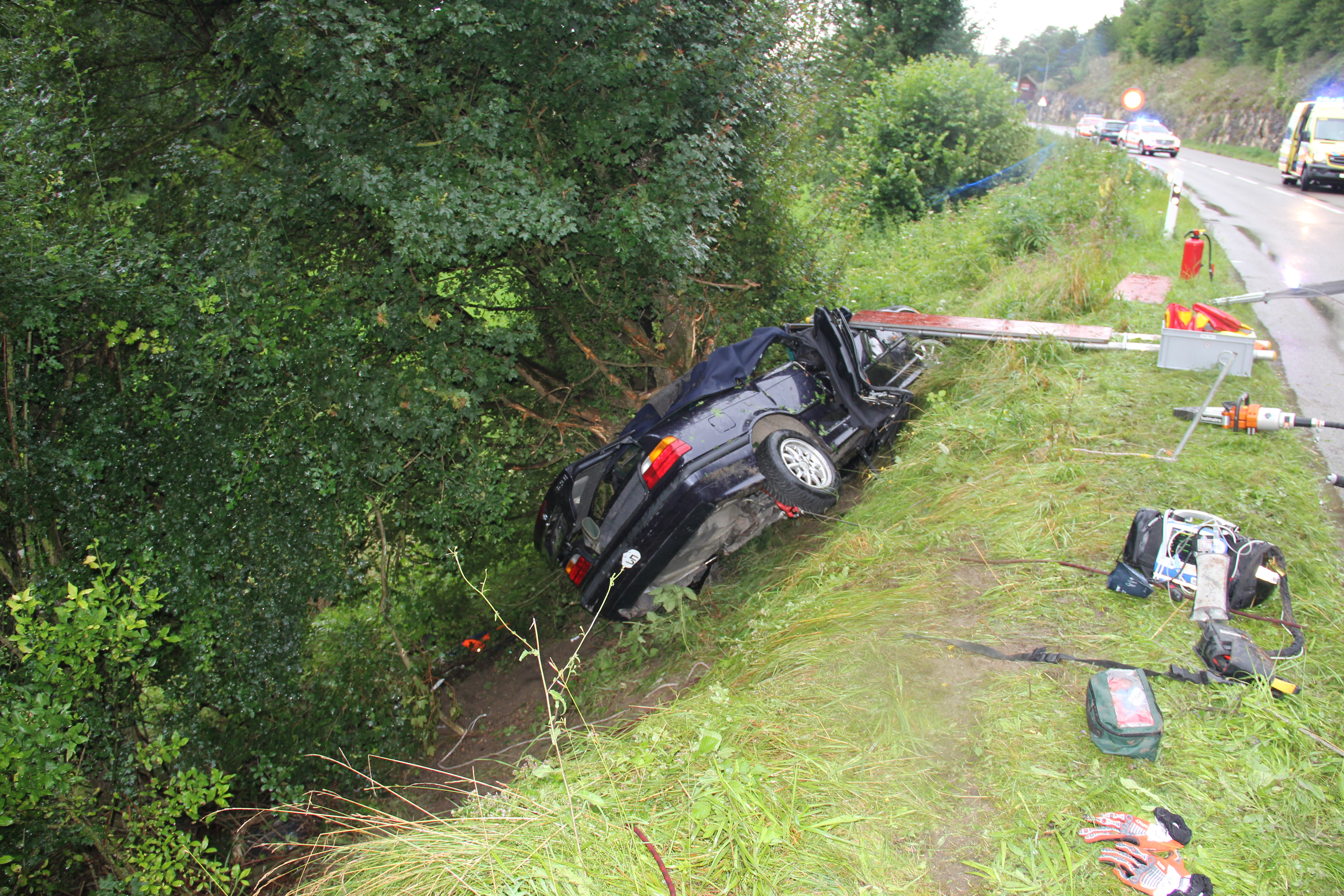 Am Dienstag, den 3.08.2021 gegen 18 Uhr fuhr ein Autofahrer von Alle in Richtung Porrentruy und verunfallte schwer.