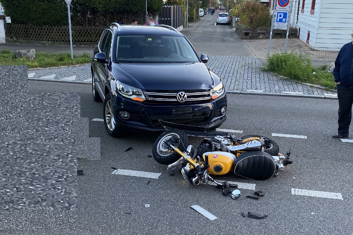 Am Donnerstagabend, 28. Oktober 2021, kurz nach 17.30 Uhr, ereignete sich in Pratteln BL, im Einmündungsbereich Sonnenweg/Hohenrainstrasse, eine Kollision zwischen einem Personenwagen und einem Motorrad. Der Motorradlenker wurde dabei schwer verletzt.