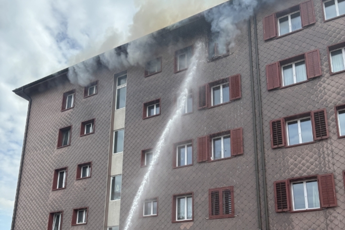 Beim Eintreffen der Einsatzkräfte drang bereits starker Rauch aus mehreren Fenstern im obersten Stock und es waren Flammen sichtbar. Die Feuerwehr konnte das Feuer in der Dachgeschosswohnung rasch unter Kontrolle bringen und in der Folge löschen.