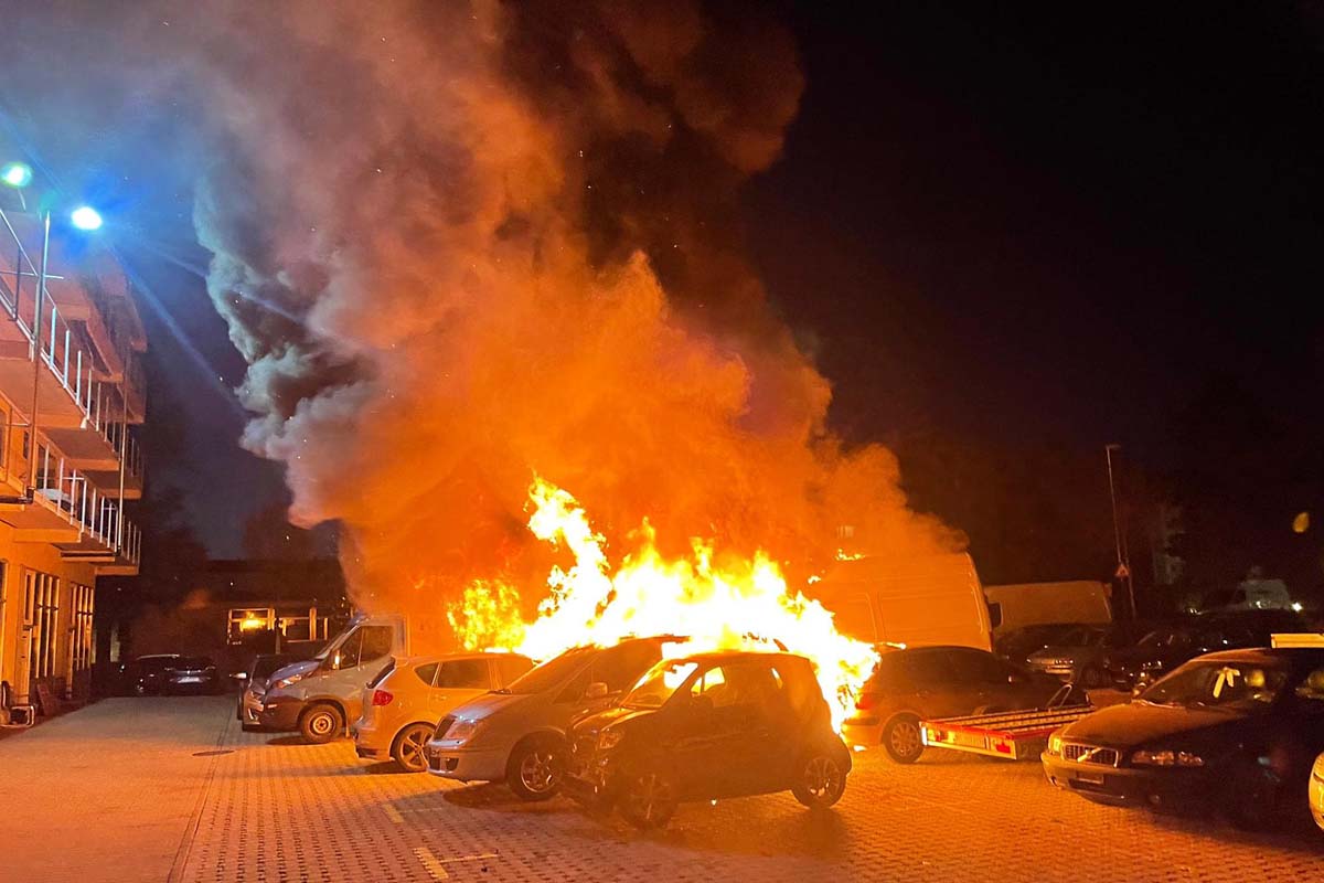 Die Feuerwehr konnte die im Vollbrand stehenden Personenwagen schnell löschen und so verhindern, dass sich das Feuer weiter ausbreitete. Insgesamt wurden durch das Feuer neun Personenwagen total zerstört oder beschädigt.