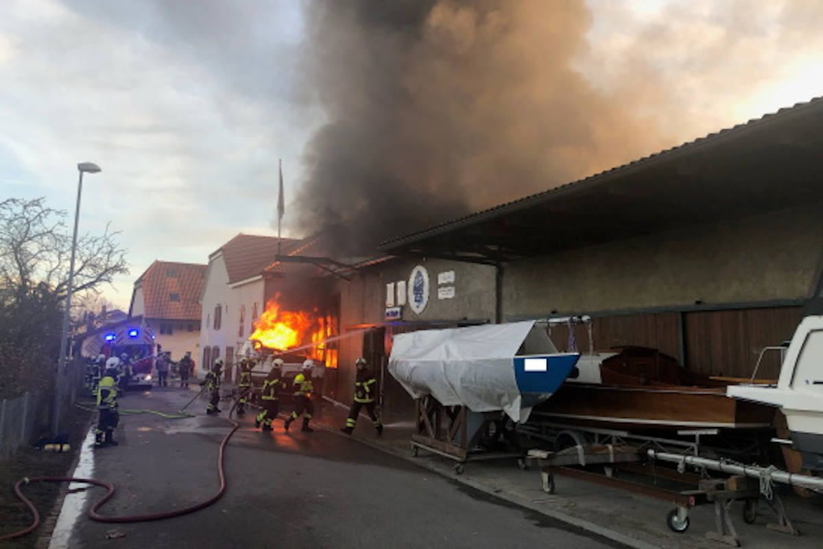 Hangar und mehrere Boote durch Flammen zerstört in Praz