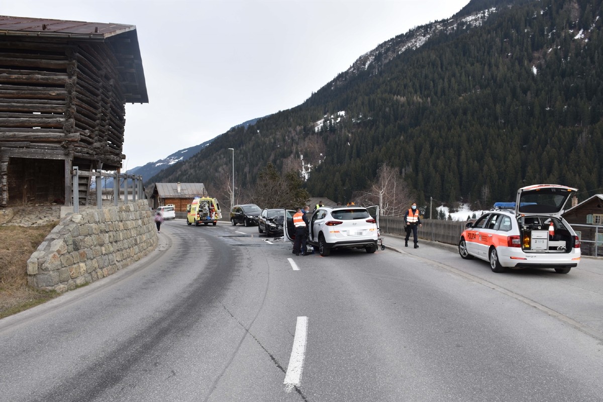 In Rabius GR verletzten sich gestern mehrere Personen nach einem Unfall. (Bildquelle: Kantonspolizei Graubünden)