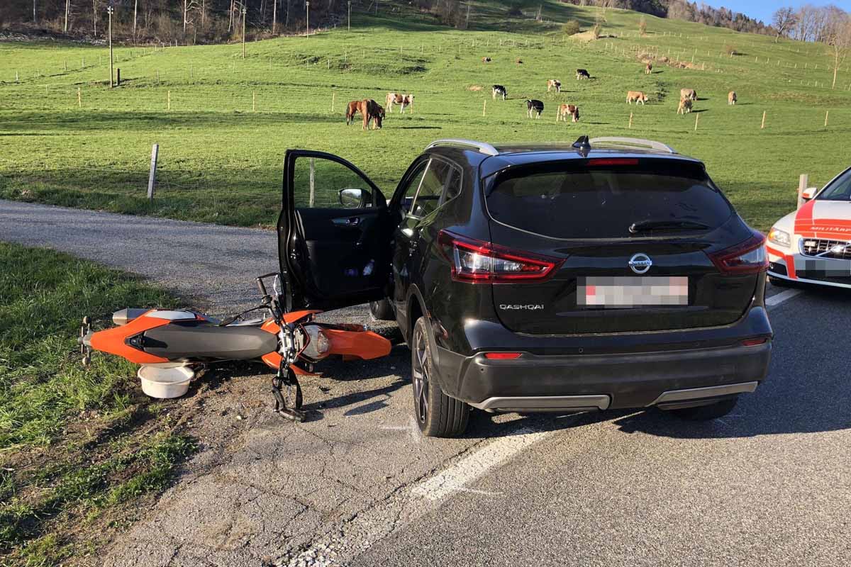 Höhe «Grubmatt» beabsichtigte sie, nach links zu einem Landwirtschaftsbetrieb abzubiegen. Beim Abbiegemanöver kam es zu einer Kollision mit einem Motorradlenker, welcher das Auto in diesem Bereich überholen wollte.