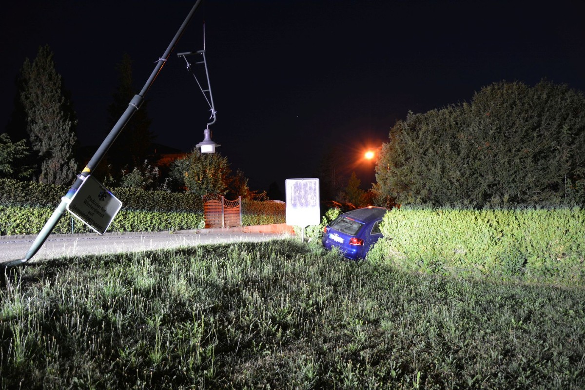 Gemäss den bisherigen Erkenntnissen der Polizei Basel-Landschaft fuhr der 21-jährige Personenwagenlenker auf der Hardstrasse bei Ramlinsburg in Richtung Lindenstrasse. Dabei kollidierte das Fahrzeug mit einem Kandelaber, fuhr über eine Wiese und kam schlussendlich in einem Gebüsch zum Stillstand.