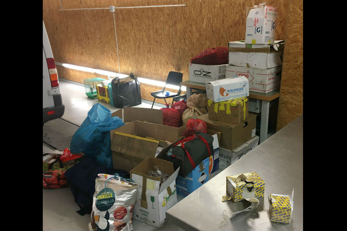 Bei der Überprüfung seines Fahrzeugs kamen noch weitere Produkte zum Vorschein: 15 Kilogramm Salat, 8 Kilogramm Fisch, 13 Kilogramm Fleisch, 12 Kilogramm Kartoffeln, 20 Kilogramm Reis, 5 Kilogramm Käse, 11 Kilogramm Zwiebeln, 26 Kilogramm Äpfel, 5 Liter Wein, eine Matratze und 25 Kilogramm Kindernahrung.