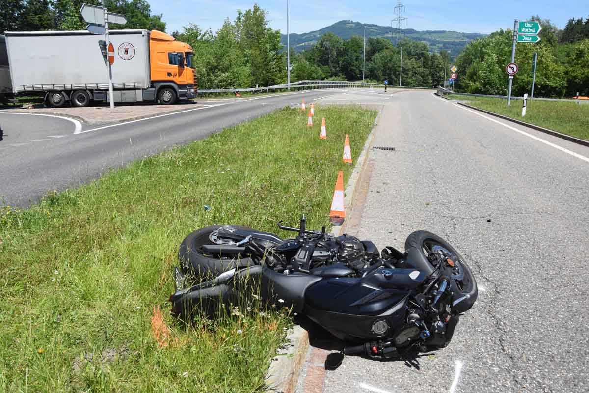 Sie wollte nach links Richtung Rüti abbiegen. Gleichzeitig fuhr der 19-jährige Motorradfahrer auf der Rütistrasse von Rüti kommend Richtung Jona. Als er bemerkte, dass die Autofahrerin vor ihm auf die Rütistrasse einfuhr, leitete er eine Vollbremsung ein und versuchte auszuweichen.
