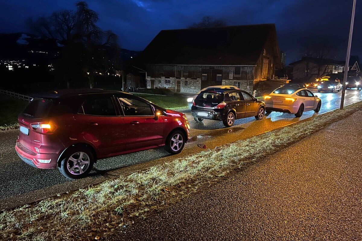 Am Donnerstagabend (09.01.2025), um 17:30 Uhr, kam es auf der St.Gallerstrasse zu einer Auffahrkollision mit drei beteiligten Autos. Zwei Personen wurden verletzt. Es entstand Sachschaden von rund 8'000 Franken.