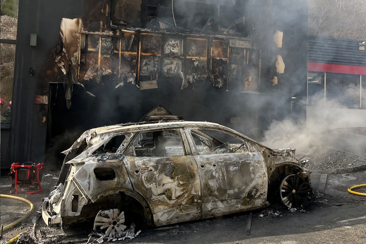 Zwei Fahrzeuge vor dem Gebäude wurden angezündet. (Bildquelle: Kantonspolizei Jura)