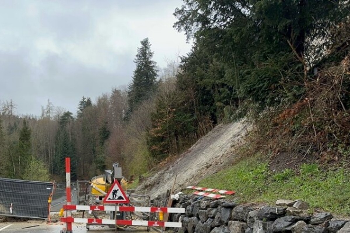Die Rehetobelstrasse im Kanton St. Gallen ist momentan wegen einem Erdrutsch gesperrt. Die Strasse wird vor dem 17. April nicht wieder geöffnet.