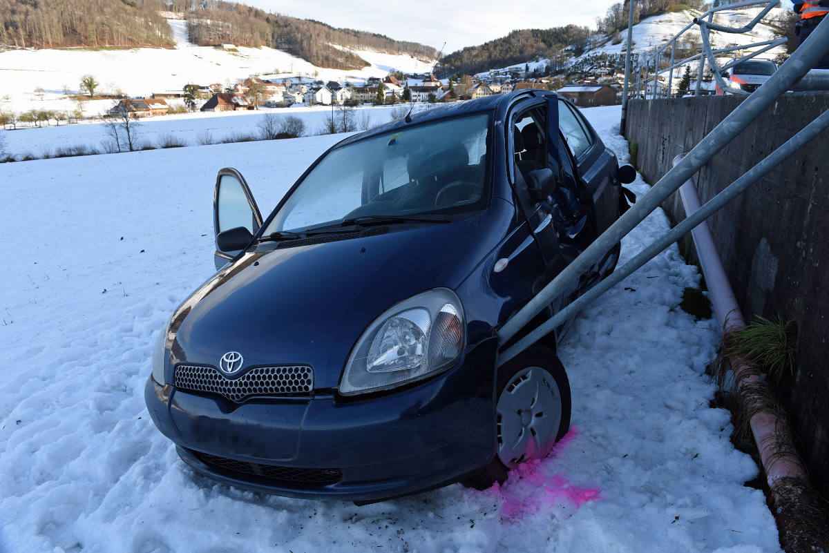 Am Freitag, 22. Januar 2021, kurz nach 08:00 Uhr fuhr eine Autofahrerin auf der Dorfstrasse von Reiden her Richtung Reidermoos. In der leichten Linkskurve bei der Liegenschaft Hübeli geriet das Fahrzeug auf der vereisten Strasse in Schleudern und verursachte eine Kollision mit dem Heck eines entgegenkommenden Autos. Anschliessend drehte sich das Auto, prallte mit der linken Seite gegen das Strassengeländer, durchbrach dieses und kam auf der tiefer gelegenen Wiese zum Stillstand.