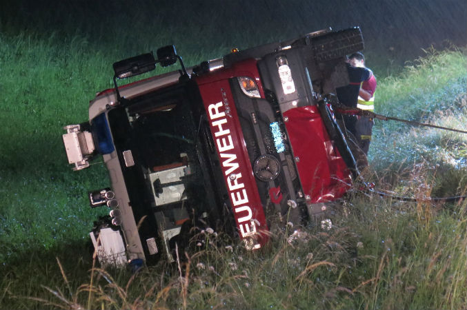 Reigoldswil BL - Feuerwehrfahrzeug kippt um