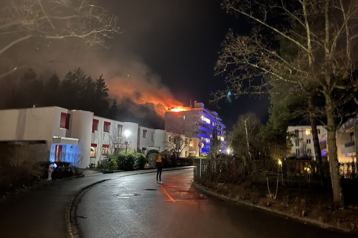 Durch die Feuerwehr konnte der Brand, welcher sich in der Dachwohnung ausbreitete, eingedämmt und schlussendlich gelöscht werden.