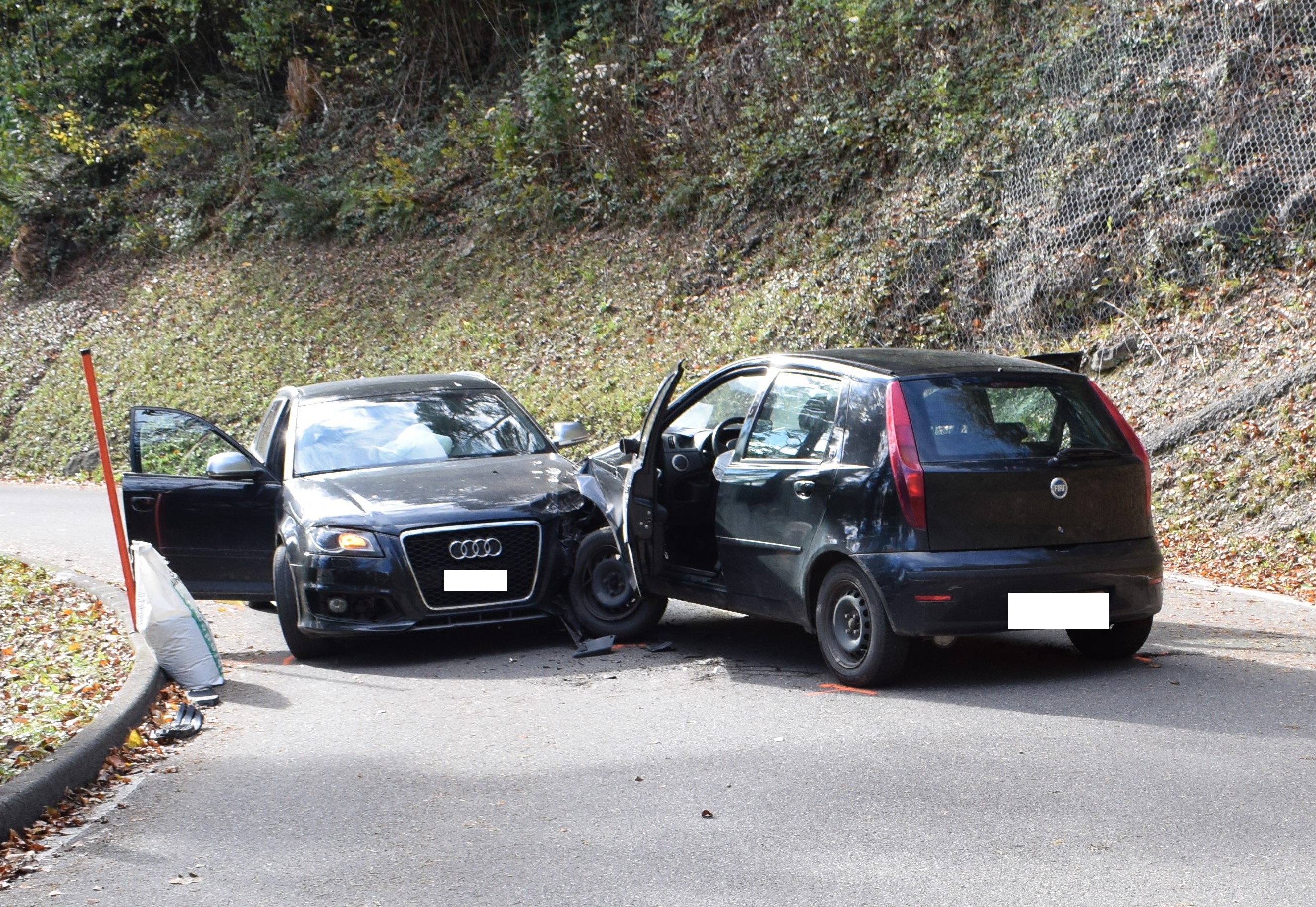 Unbestimmte Verletzungen hat sich am Freitagmittag, 4. November 2022, ein Lenker bei einer Frontalkollision zwischen zwei Personenwagen in Reute zugezogen.