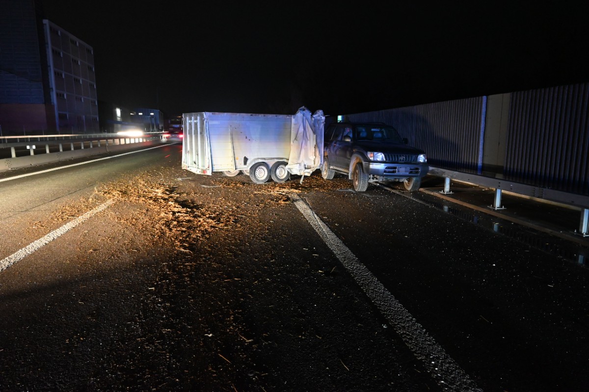 Anhänger auf der A1 bei Rheineck gekippt. (Bildquelle: Kantonspolizei St. Gallen)