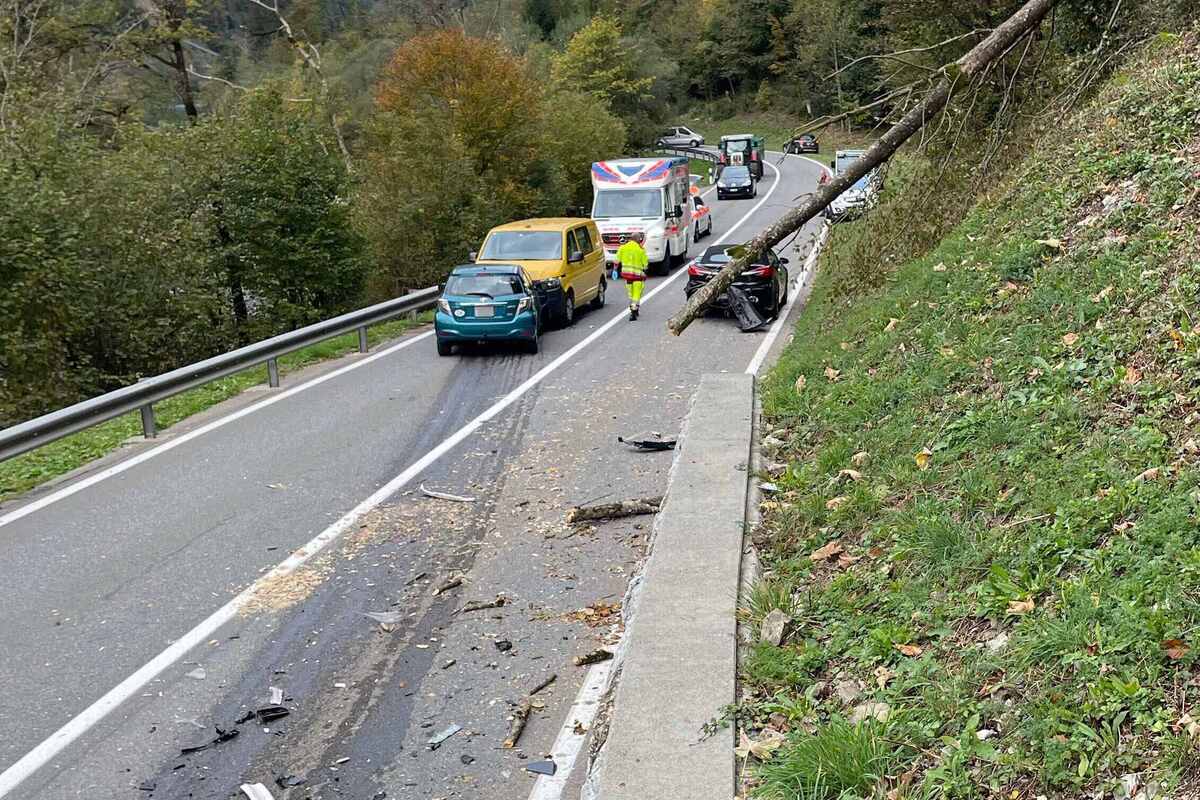 Um 08.20 Uhr fuhr ein 21-jähriger Automobilist von Muotathal in Richtung Schwyz. Kurz vor der Abzweigung Illgau musste der Lenker sein Fahrzeug bis zum Stillstand abbremsen, da ein umgefallener Baum die Strasse versperrte. Dies bemerkte eine nachfolgende 63-jährige Autofahrerin zu spät. Sie fuhr in das Heck des stehenden Personenwagens, geriet anschliessend auf die Gegenfahrbahn und kollidierte mit einem entgegenkommenden Lieferwagen.
