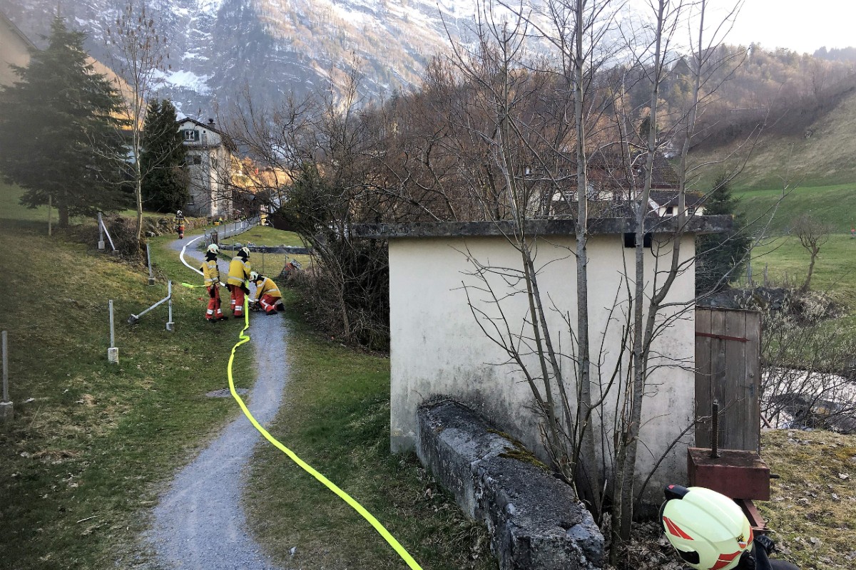 Die Feuerwehr konnte gestern in Riedern GL den Mottbrand schnell löschen. (Bildquelle: Kantonspolizei Glarus)