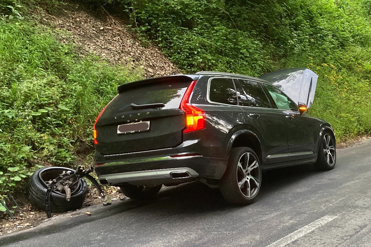 Dabei kollidierte das Fahrzeug am linken Strassenrand mit einem grossen Steinblock, worauf das Vorderrad aus der Aufhängung gerissen wurde. Es entstand Sachschaden, verletzt wurde niemand.