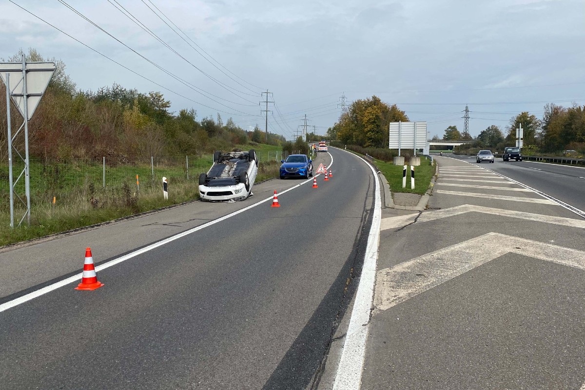 Nach einem Selbstunfall ist ein Auto auf dem Dach liegend zum Stillstand gekommen. Der Lenker hatte Glück und blieb unverletzt.