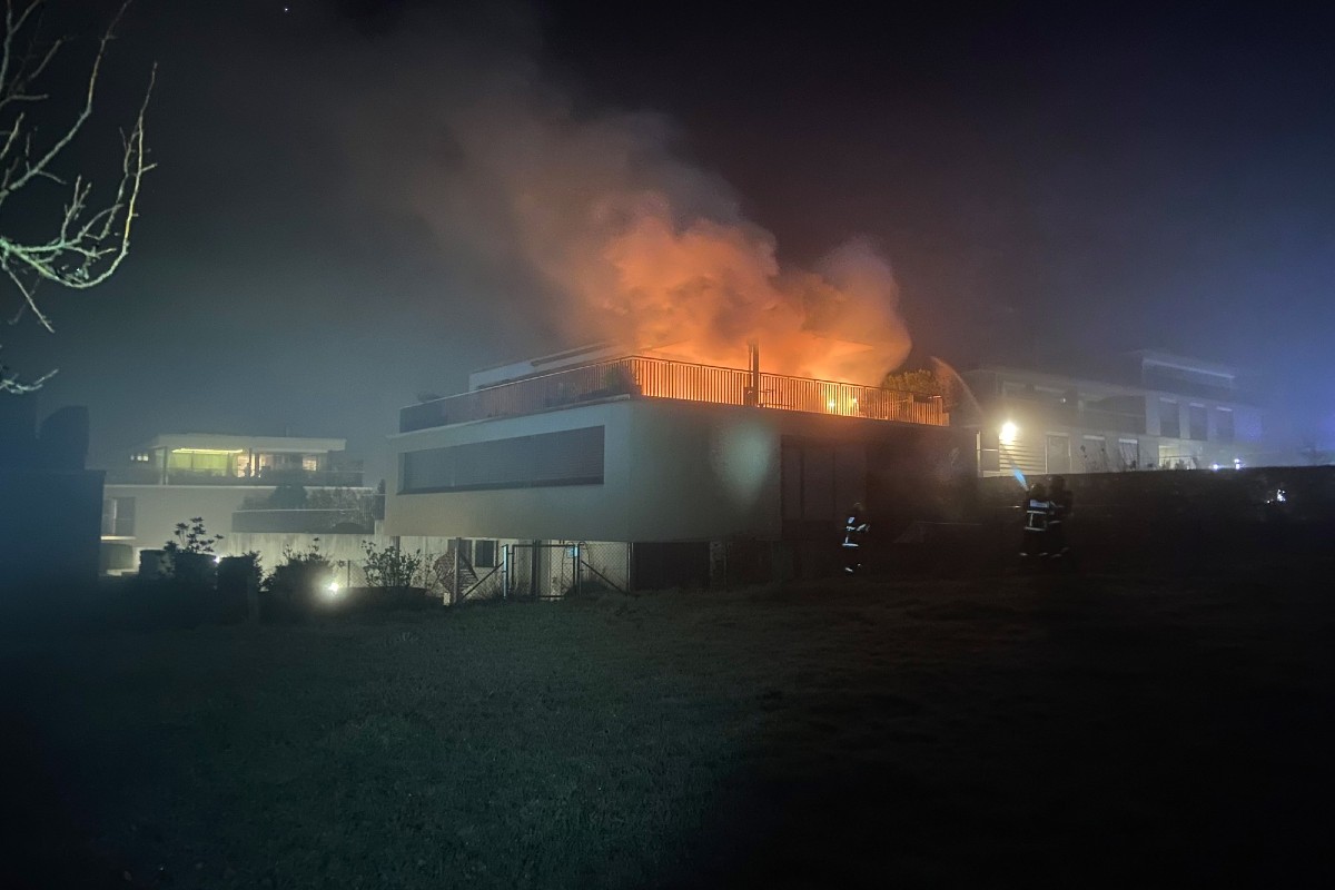 Auf einer Terrasse eines Einfamilienhauses ist in der Nacht auf den 6.12.2022 ein Feuer ausgebrochen. Ein Grossaufgebot der Feuerwehr konnte Schlimmeres verhindern. Verletzt wurde niemand.