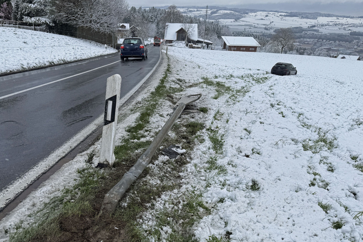In einer Linkskurve im Bereich Gosperdingen geriet das Fahrzeug aus noch ungeklärten Gründen rechts von der Fahrbahn ab, prallte gegen ein Kurvensignal und kam schliesslich im Wiesland zum Stillstand.