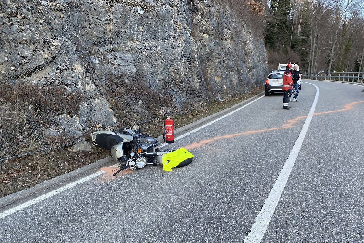 Am Samstag, 19. Februar 2022, kurz nach 17.00 Uhr, ereignete sich auf der Challstrasse in Röschenz BL ein Selbstunfall eines Motorradfahrers. Der Lenker wurde dabei schwer verletzt. Die Polizei sucht Zeugen.