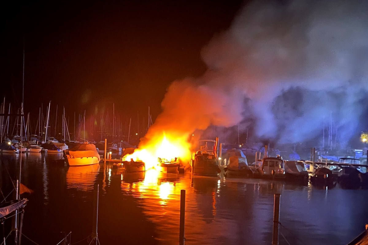 Aus unbekannten Gründen brannten in der Nacht zum Sonntag im Gemeindehafen in Romanshorn zwei Motorboote. Zwei Personen wurden leicht verletzt. Die Kantonspolizei Thurgau sucht Zeugen.