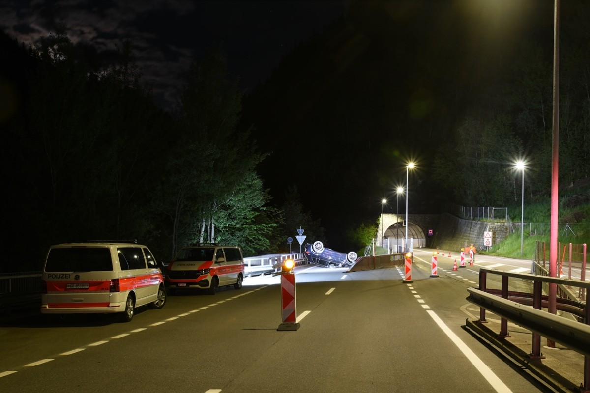 Ein 82-Jähriger hat sich bei einem Unfall in Rongellen GR auf der A13 verletzt. (Bildquelle: Kantonspolizei Graubünden)