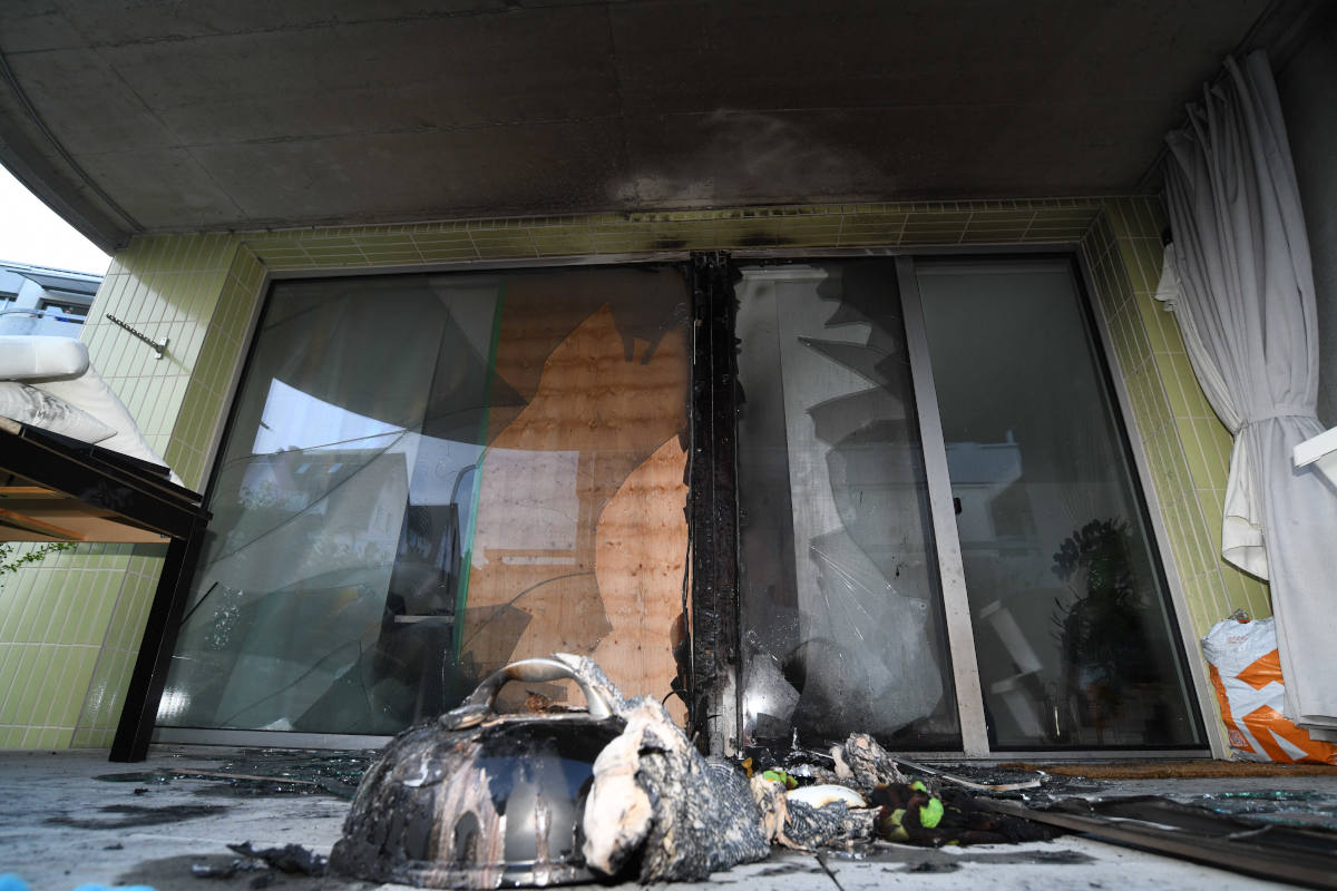 Durch den Brand wurde die gesamte Glasfront der Terrasse, sowie der Boden und die Decke beschädigt. Durch die zerbrochene Fensterscheibe gelangte Rauch in die Wohnung. Die Feuerwehr konnte diese entrauchen und belüften. Die Brandursache wird durch das Kompetenzzentrum Forensik der Kantonspolizei St.Gallen abgeklärt.