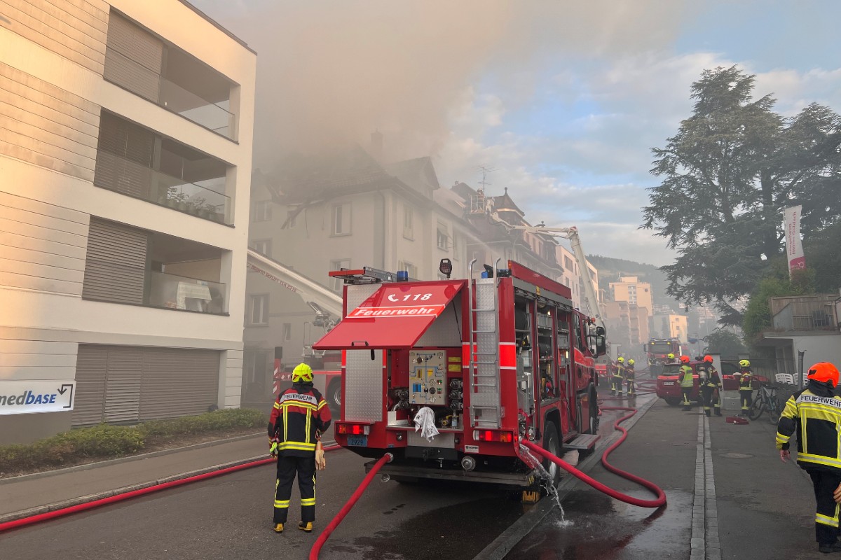 Brandbekämpfung mussten Teile des Daches aufgerissen werden. Die Löscharbeiten dauern zum Zeitpunkt der Berichterstattung noch an. Ausserdem wird während der Nacht eine Brandwache durch die Feuerwehr gestellt.