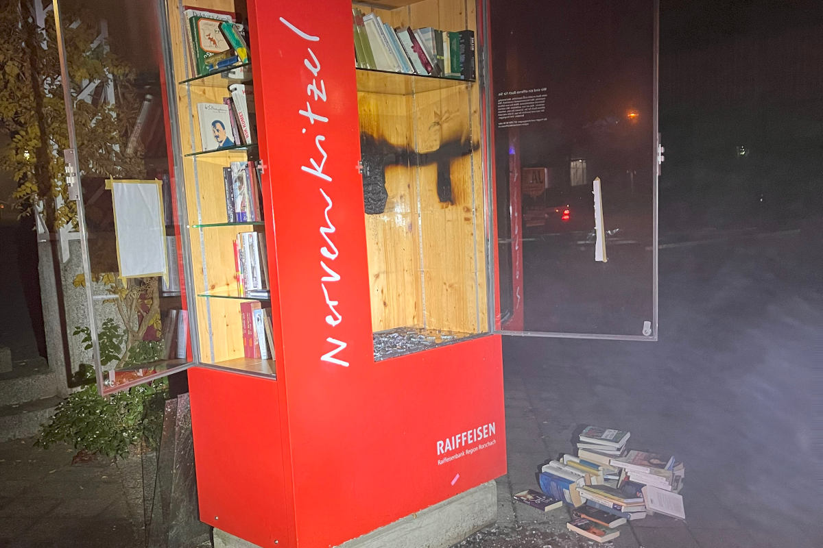 Sonntagnacht haben Unbekannte einen Bücherkasten in Rorschach angezündet. Es entstand Sachschaden. Die Polizei hat eine Untersuchung eingeleitet.