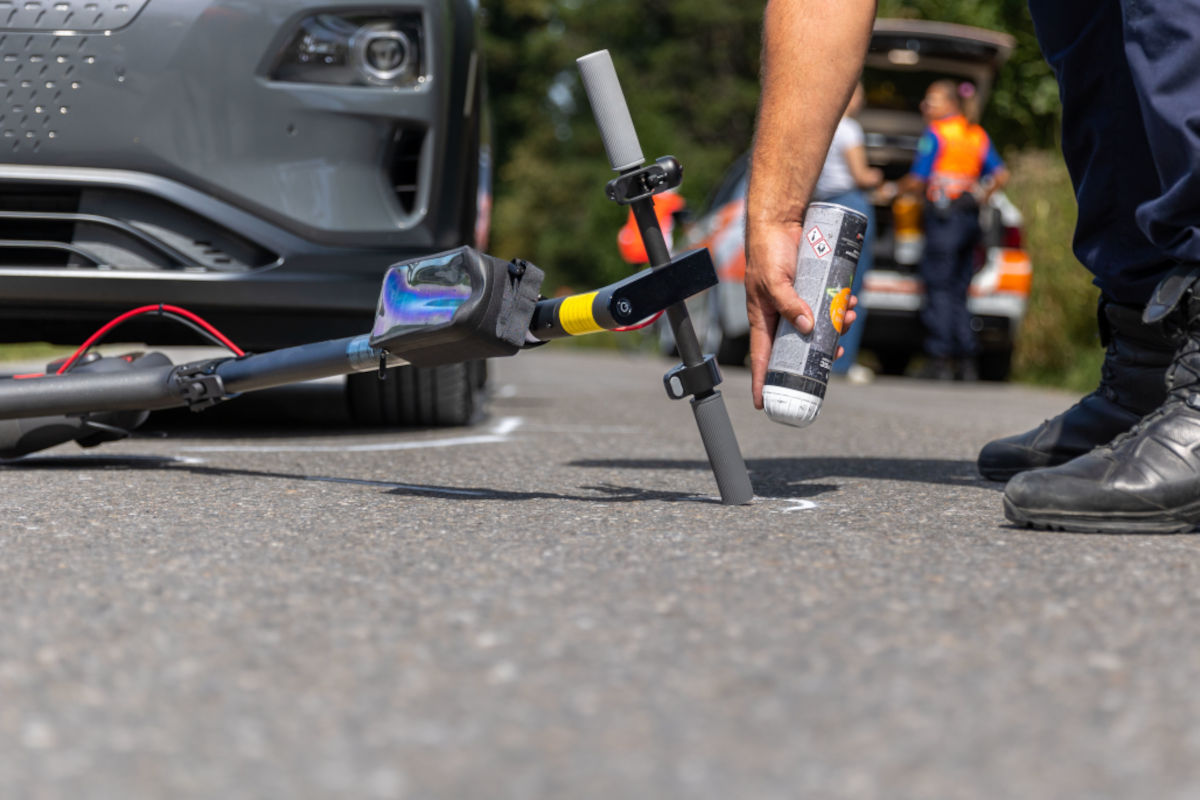Zur gleichen Zeit befand sich ein 38-jähriger Mann mit seinem E-Scooter ebenfalls im Kreisverkehr und wollte diesen bei derselben Ausfahrt verlassen. Aus bisher ungeklärten Gründen kam es dabei zur Kollision zwischen den beiden Fahrzeugen.