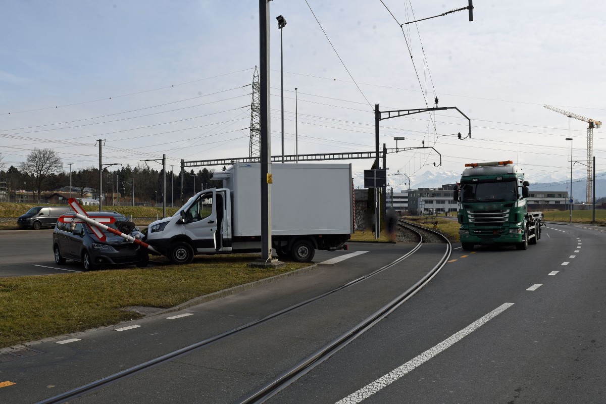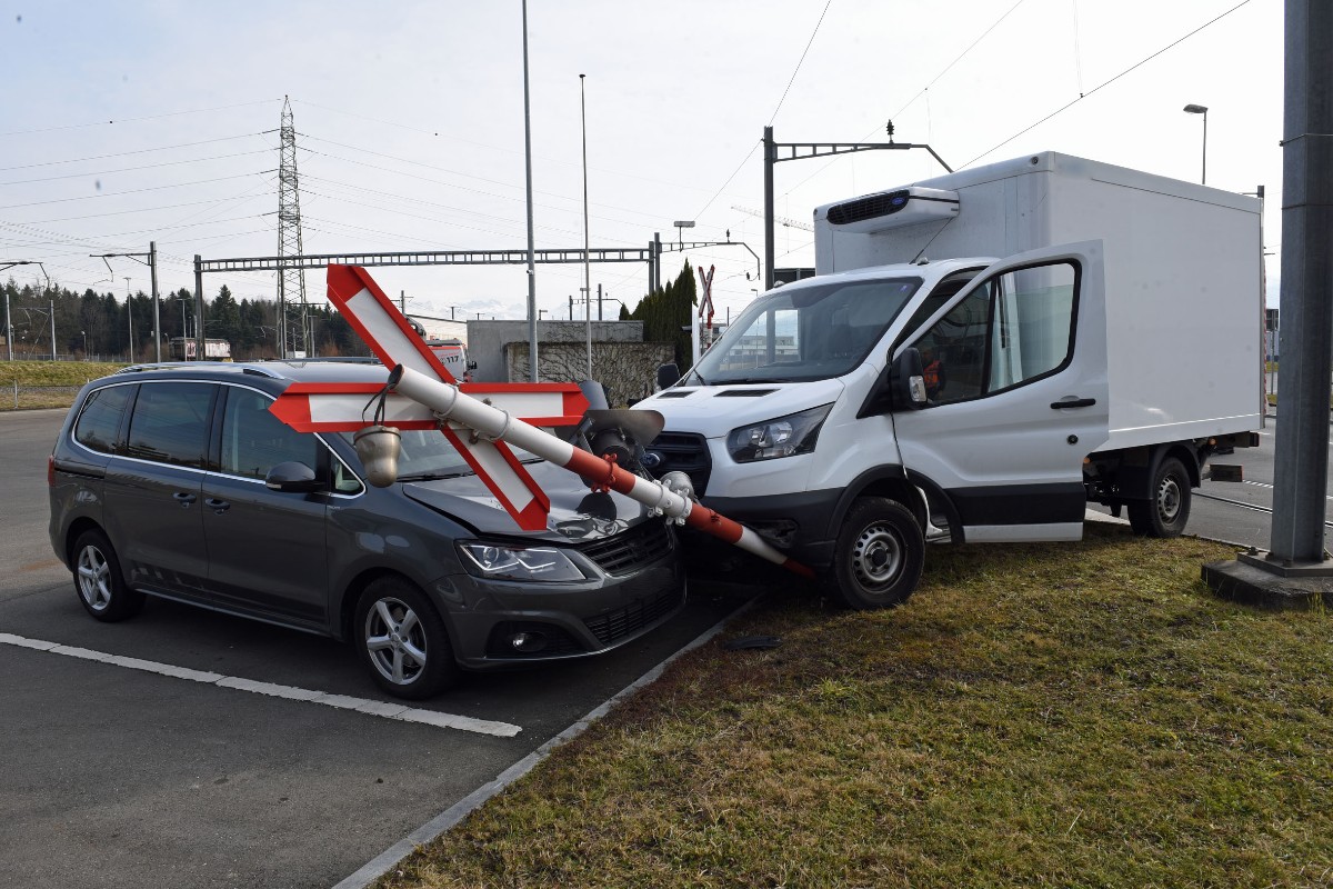 Dort beabsichtigte er nach rechts abzubiegen. Von diesem Abbiegemanöver wurde der nachfolgende Lastwagenfahrer überrascht und er prallte mit der Front seines Lastwagens gegen das Heck des abbiegenden Lieferwagens. Durch den Anprall wurde der Lieferwagen gegen die Blinklichtanlage des dortigen Bahnübergangs geschoben.